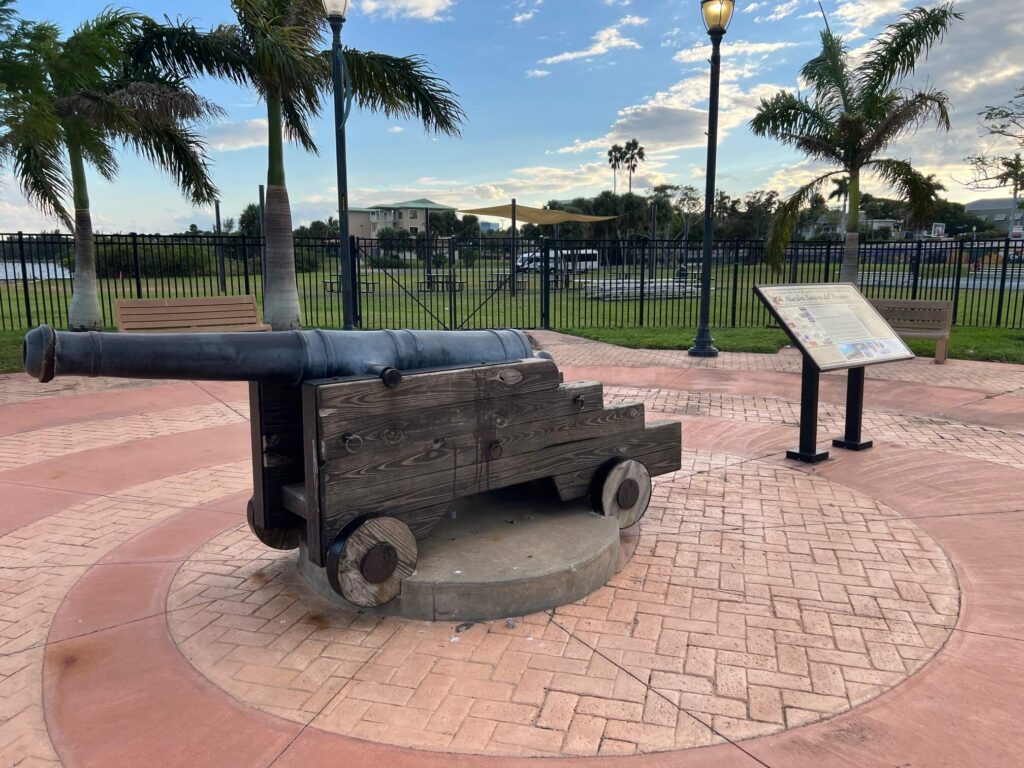 On Thursday, October 23, our Regional Director (Florida Treasure Coast), Jim Wilson (Member #171), appeared as the “ghost” at the 1715 Fleet cannon on the Fort Pierce waterfront from 5:30 to 7:30 p.m. This was Jim’s second year (John Brandon manned the cannon for the first two years it was there). A total of eight tours consisting of 10-25 guests per tour (approximately 125 total), stopped for a short ten-minute informational talk about the 1715 Fleet, the 1715 cannon, the 1715 Fleet Society, and 1715 Fleet — Queens Jewels, LLC. Jim handed out 2026 Conference and membership flyers to interested people — one being a teacher at our venue, Indian River State College!