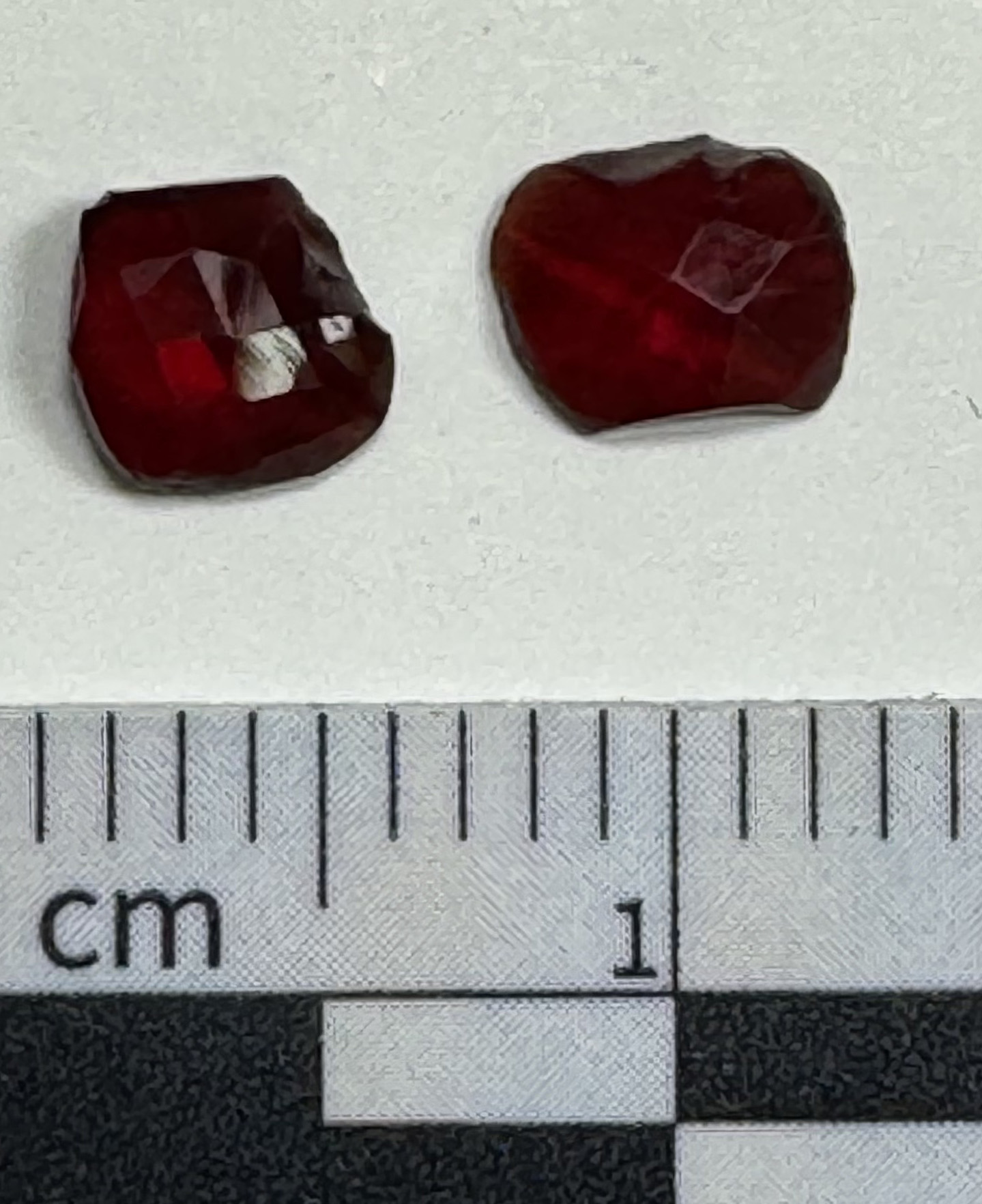 Both a geologist and a certified gemologist identified this stone as a garnet. It was also ascertained that the style of the faceting was consistent with work performed by 18th-century jewelers. Circumstantial evidence would support the proposition that these garnets originated in Mexico, inasmuch as Mexico is known for producing high-quality garnets.