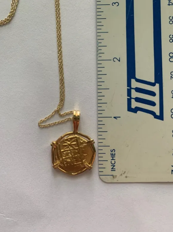Recently we received an email from Fleet Society member Robert Abberger requesting our assistance. On December 26, 2022, two 1715 Fleet one escudos coins mounted in necklaces were stolen from his car along with other presents. Robert indicated that he was loading his car with gifts right in front of his porch when he went inside to get more packages and by the time he returned (only moments later) the car had been entered and the coins and other gifts stolen. This was heartbreaking for him because he had purchased these coins twenty years before with the intention of giving them as gifts to his two daughters when the right time arrived. The right time did arrive, but he was cruelly denied his dream of giving these precious items to his girls. The police were notified but as of this posting nothing has shown up.